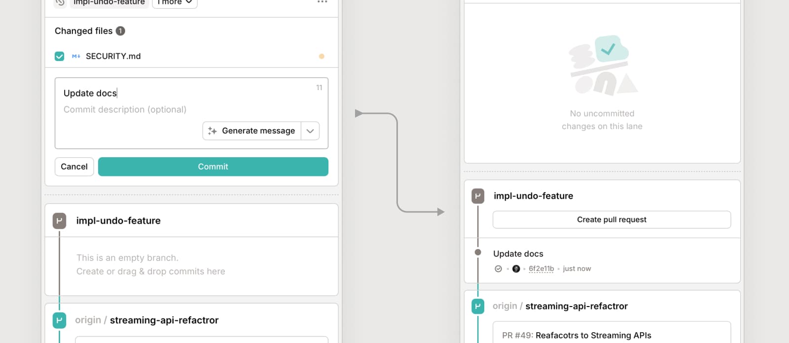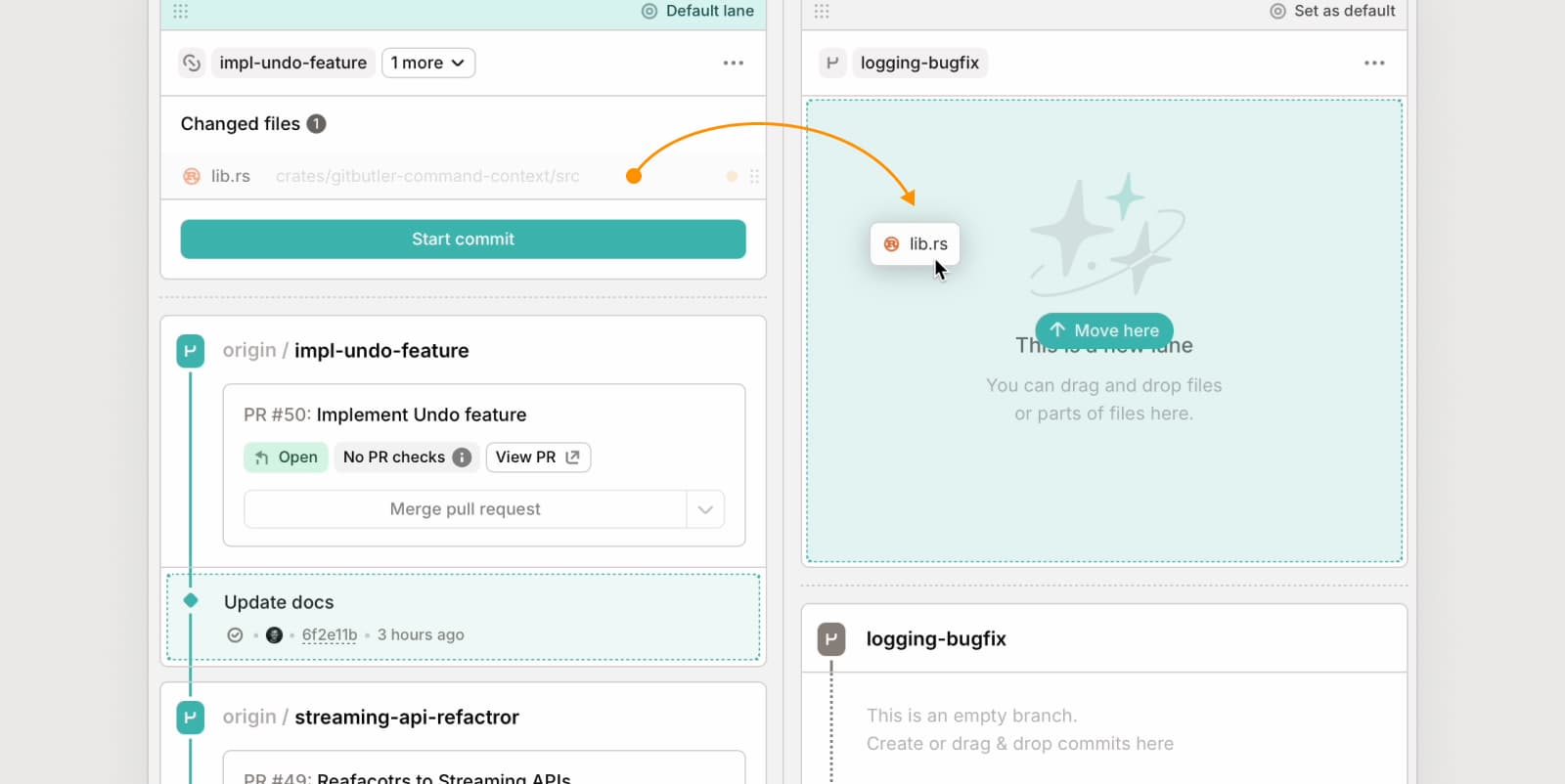 1. If a change in your stack is independent (e.g. an unrelated bugfix) it can be moved to a different virtual branch (or stack). This works for both uncommitted changes and existing commits that you may want to relocate.