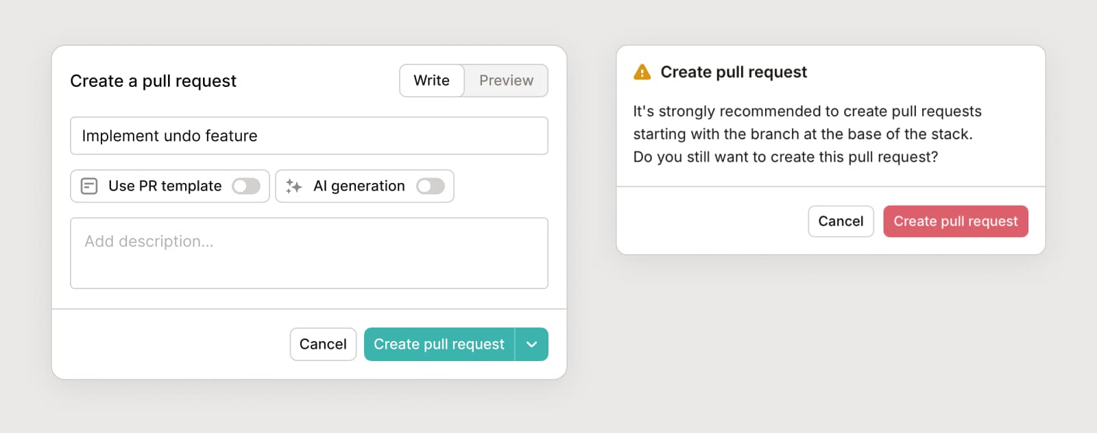 1. Pull requests must be created one at a time starting from the bottom of the stack.