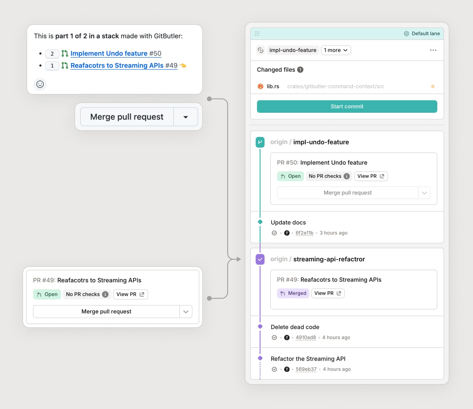 Utilizing stacked pull requests, means that the sub-tasks of a larger change are in their own PRs. This way it is possible to approve and merge the initial part of a stack (e.g. a refactor) while still iterating on the remaining sub-tasks.
